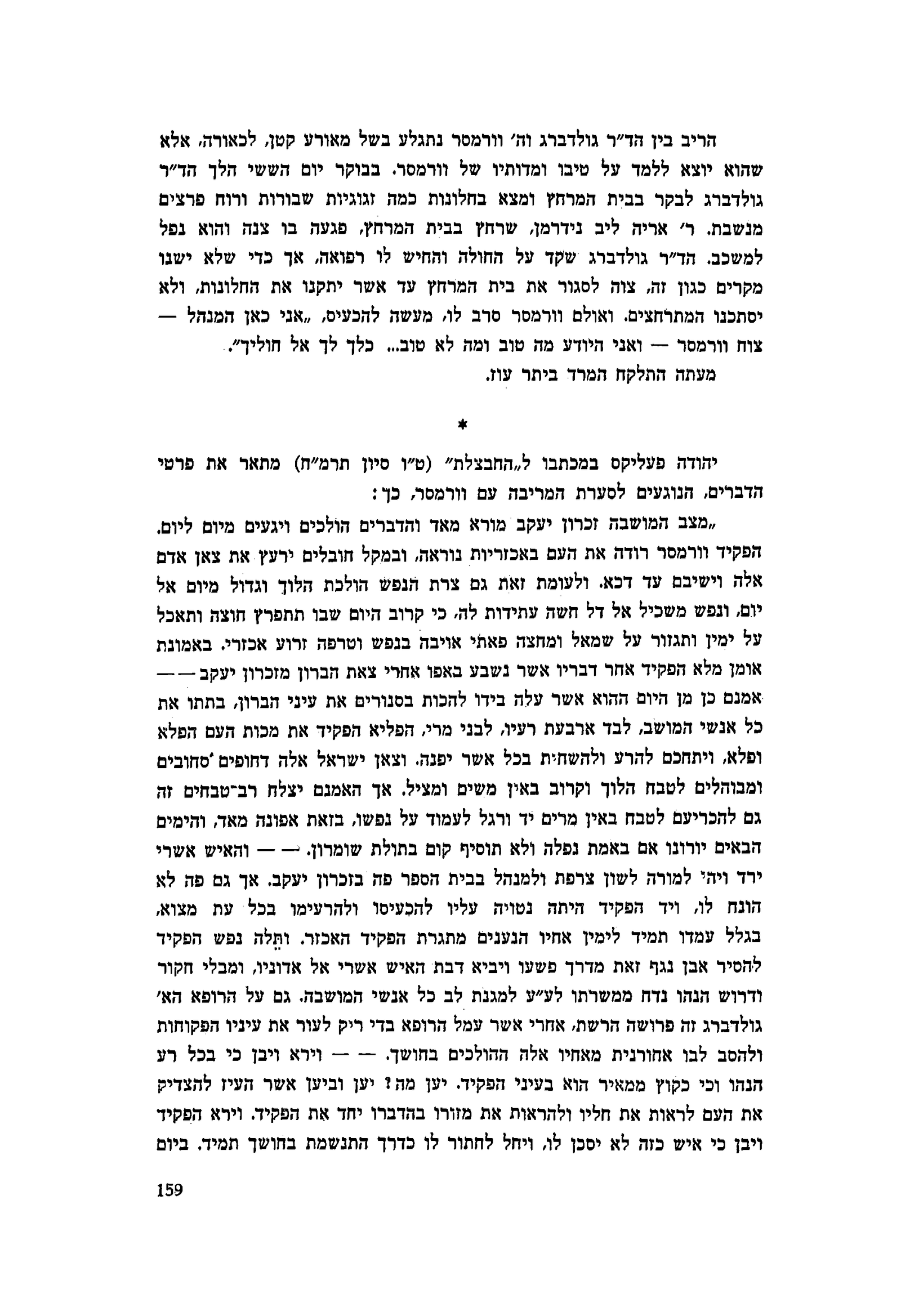 תרמ״ח 1888 ) מתאר את פרטי הדברים, הנוגעים לסערת המריבה עם וורמסר, כך: