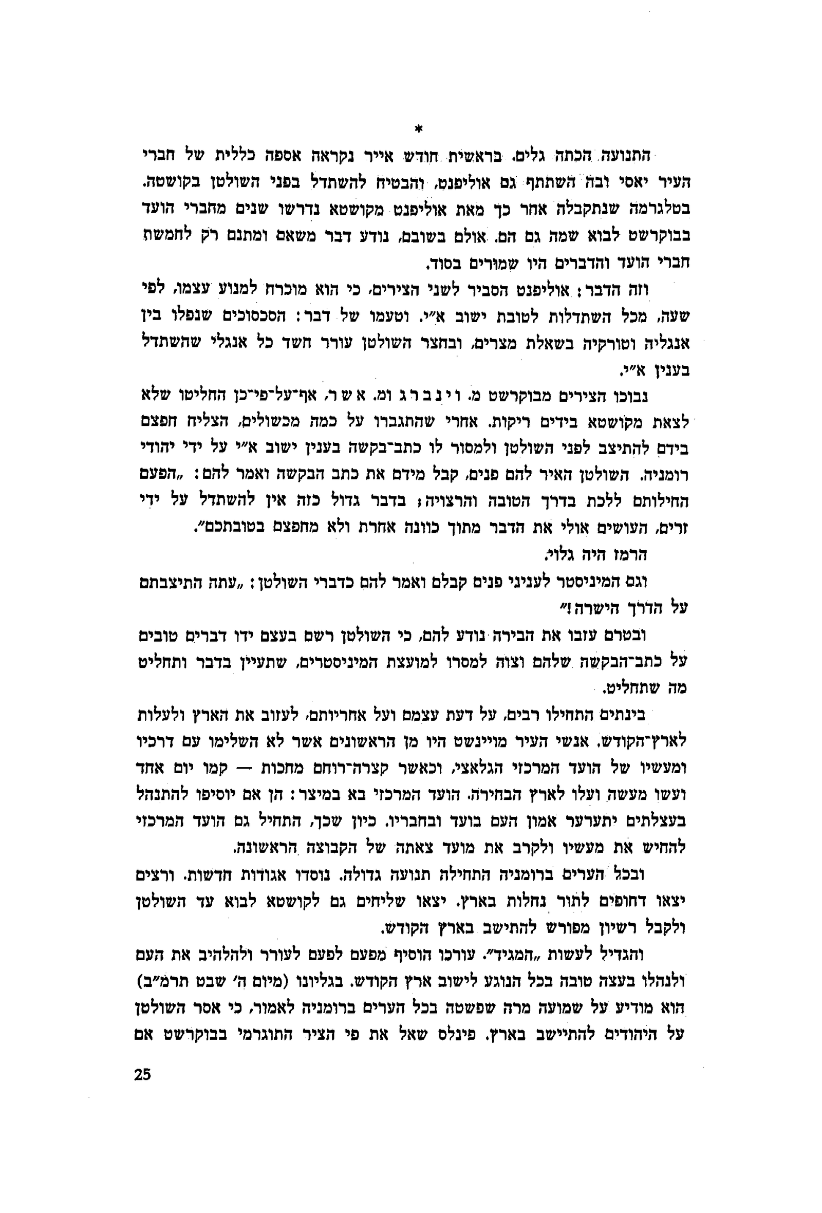 ובכל הערים ברומניה התחילה תנועה גדולה. נוסדו אגודות חדשות. ורצים יצאו דחופים לתור נחלות בארץ. יצאו שליחים גם לקושטא לבוא עד השולטן ולקבל רשיון מפורש להתישב בארץ הקודש.