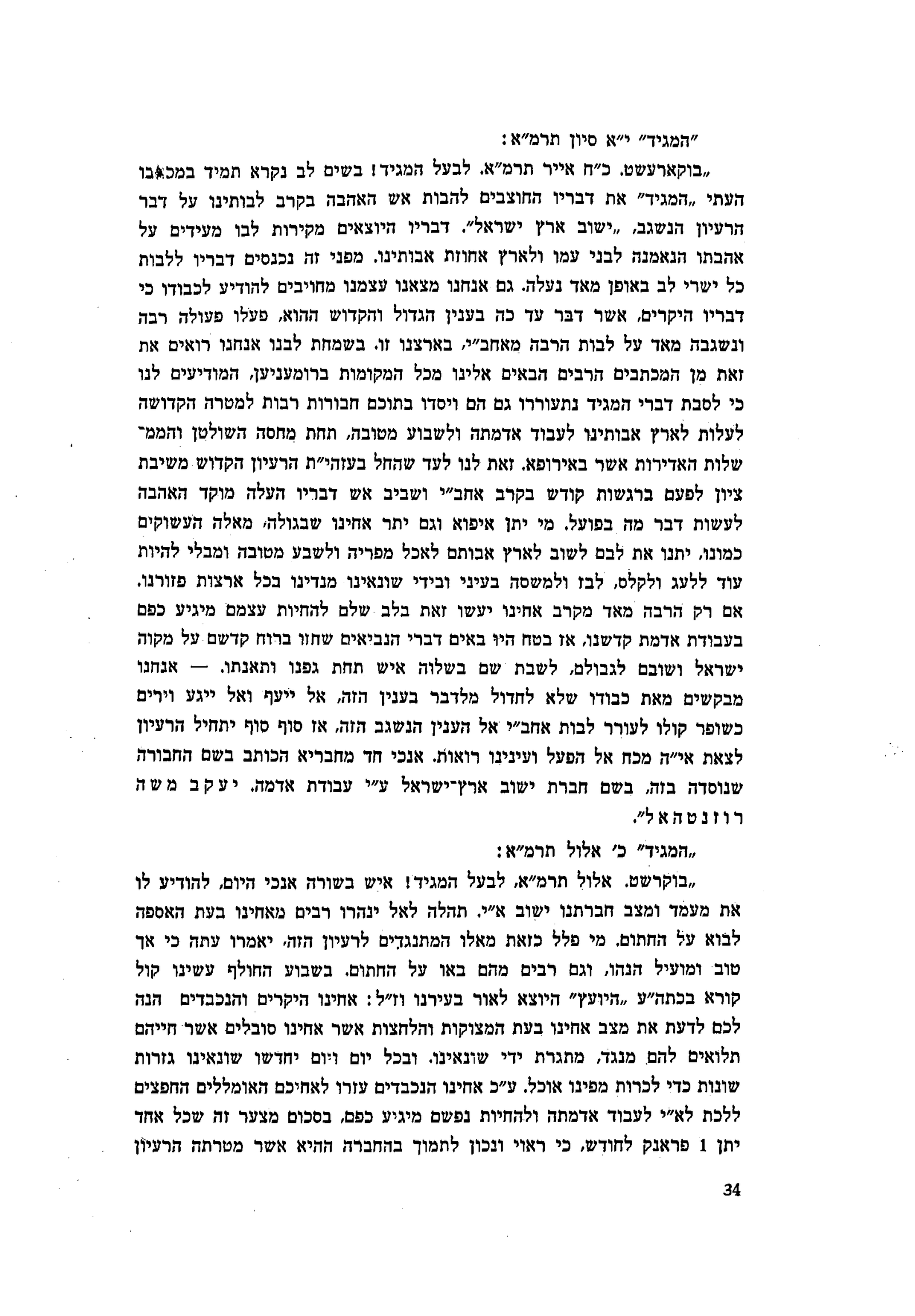 וז״ל וזו לשונו : אחינו היקרים והנכבדים הנה לכם לדעת את מצב אחינו בעת המצוקות והלחצות אשר אחינו סובלים אשר חייהם תלואים להם מנגד, מתגרת ידי שונאינו. ובכל יום ויום יחדשו שונאינו גזרות שונות כדי לכרות מפינו אוכל.