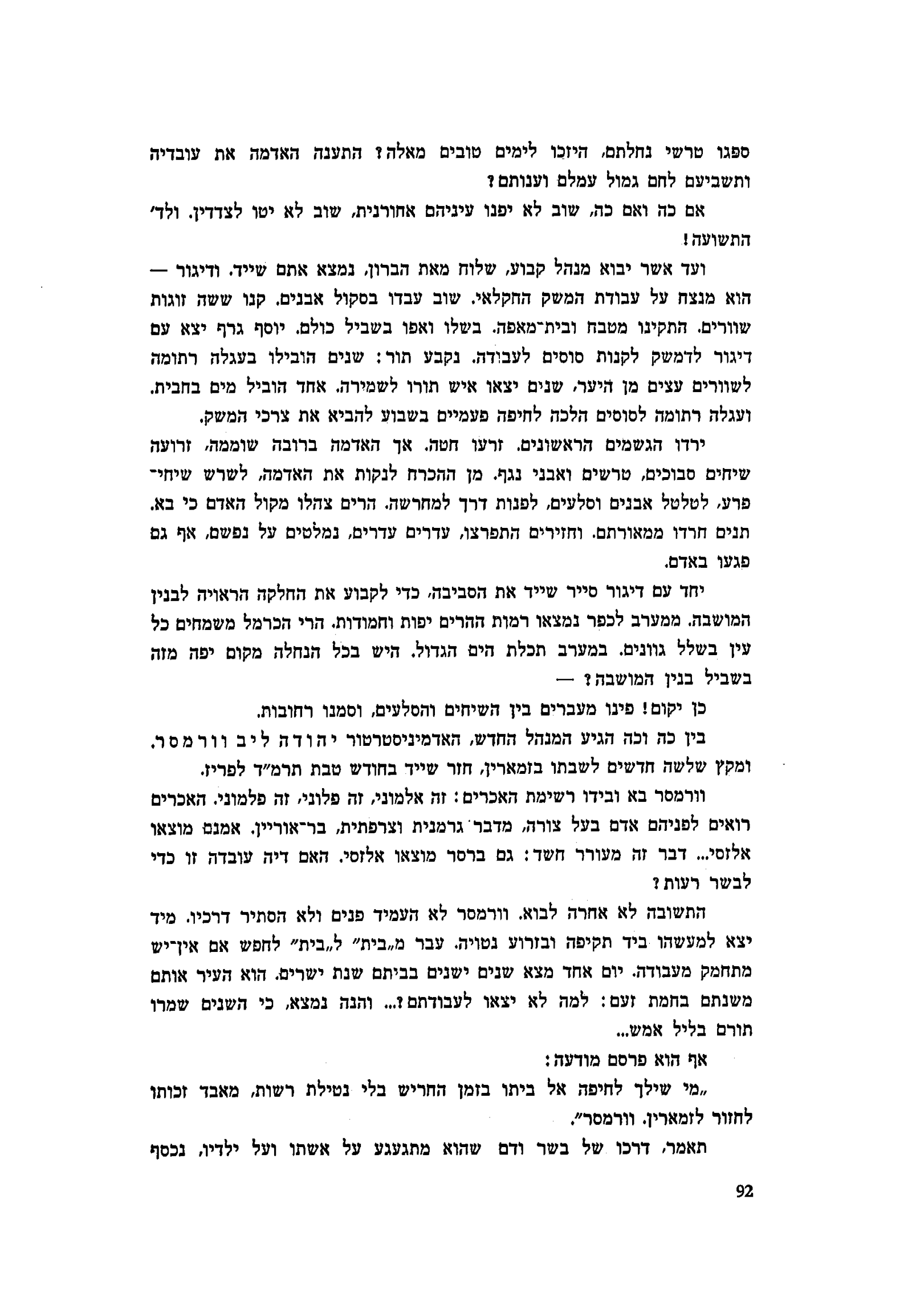 ירדו הגשמים הראשונים. זרעו חטה. אך האדמה ברובה שוממה, זרועה שיחים סבוכים, טרשים ואבני נגף. מן ההכרח לנקות את האדמה, לשרש שיחי־פרע, לטלטל אבנים וסלעים, לפנות דרך למחרשה. הרים צהלו מקול האדם כי בא. תנים חרדו ממאורתם. וחזירים התפרצו, עדרים עדרים, נמלטים על נפשם, אף גם פגעו באדם.