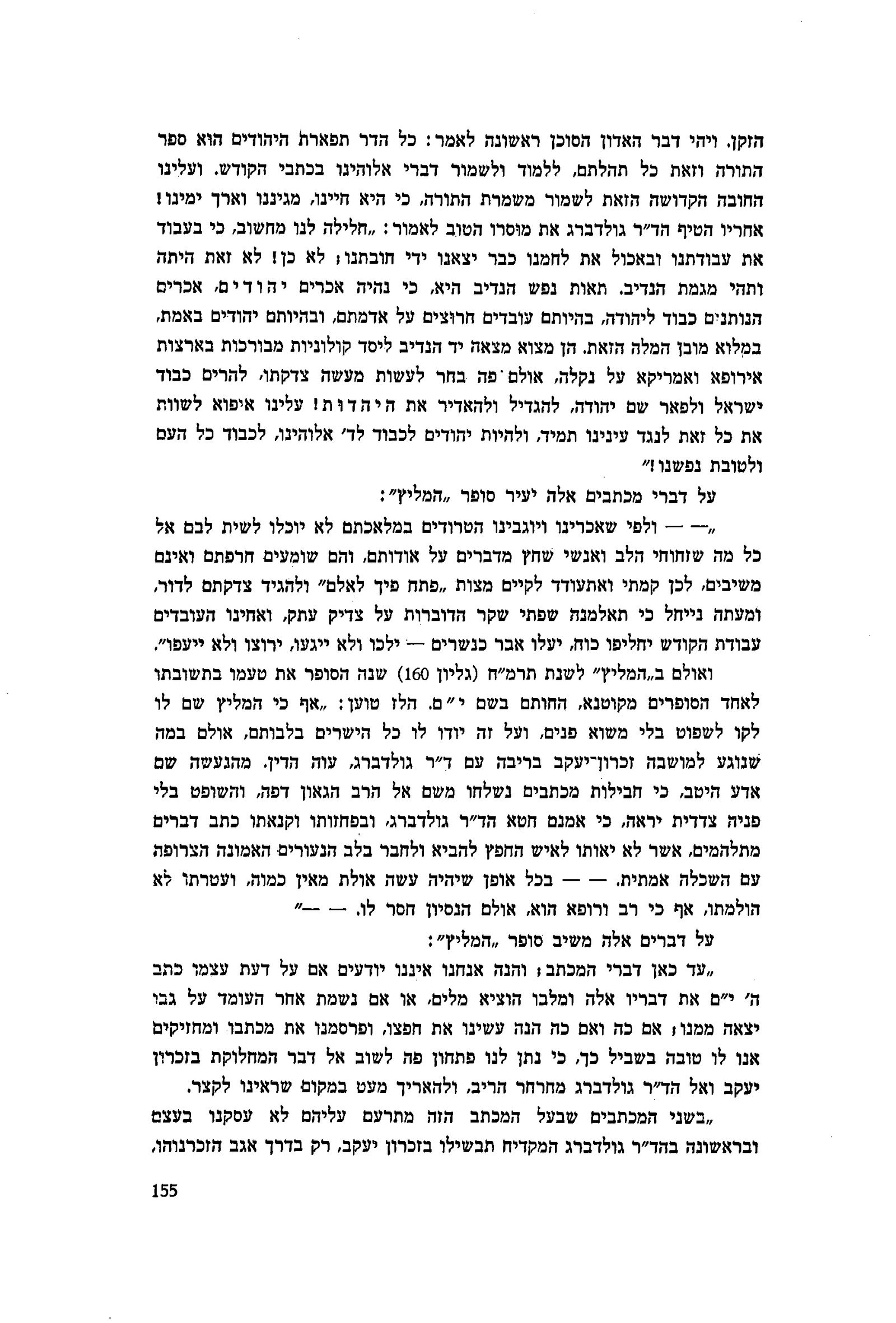 ״בשני המכתבים שבעל המכתב הזה מתרעם עליהם לא עסקנו בעצם ובראשונה בהד״ר גולדברג המקדיח תבשילו בזכרון יעקב, רק בדרך אגב הזכרנוהו,