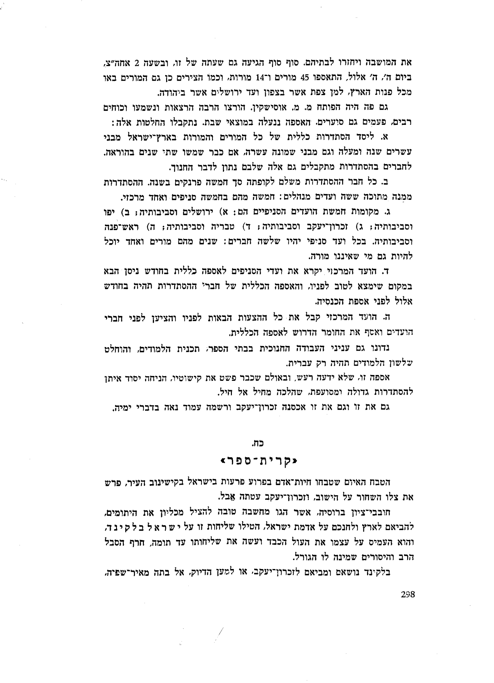 א. ליסד הסתדרות כללית של כל המורים והמורות בארץ־ישראל מבני עשרים שנה ומעלה וגם מבני שמונה עשרה, אם כבר שמשו שתי שנים בהוראה. לחברים בהסתדרות מתקבלים גם אלה שלבם נתון לדבר החנוך.