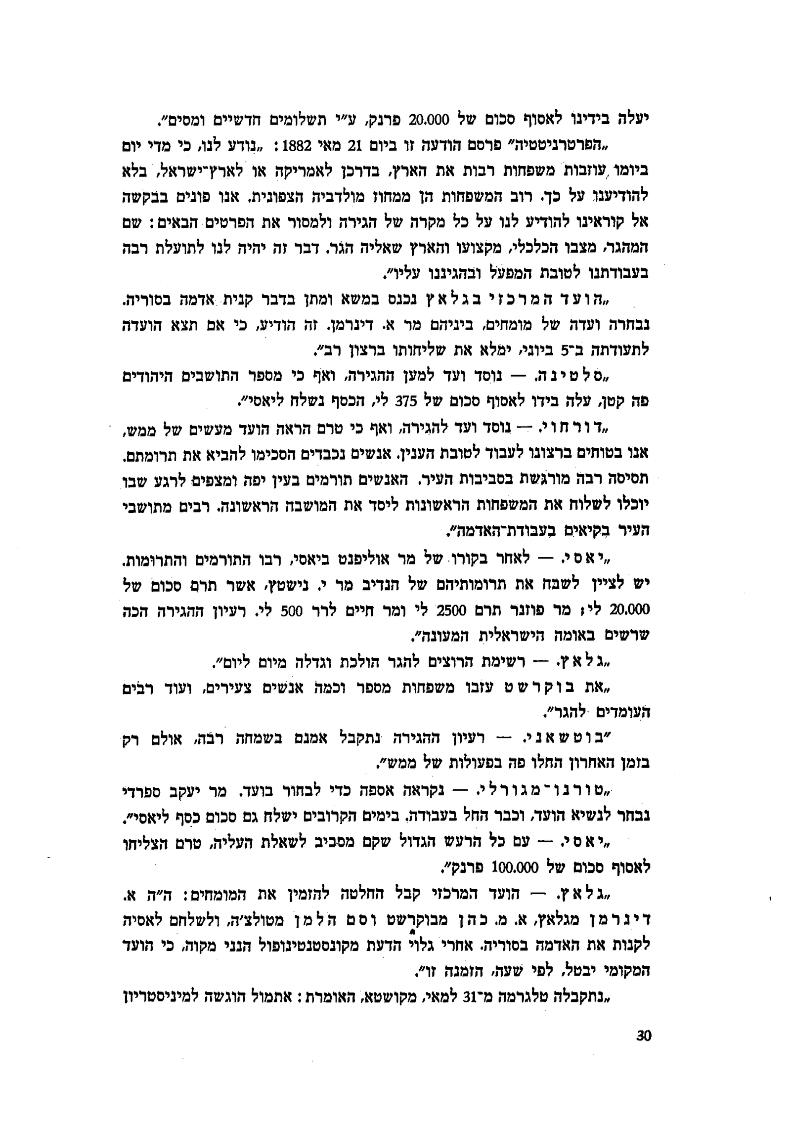 ״ יאסי . — עם כל הרעש הגדול שקם מסביב לשאלת העליה, טרם הצליחו לאסוף סכום של 100.000 פרנק״.