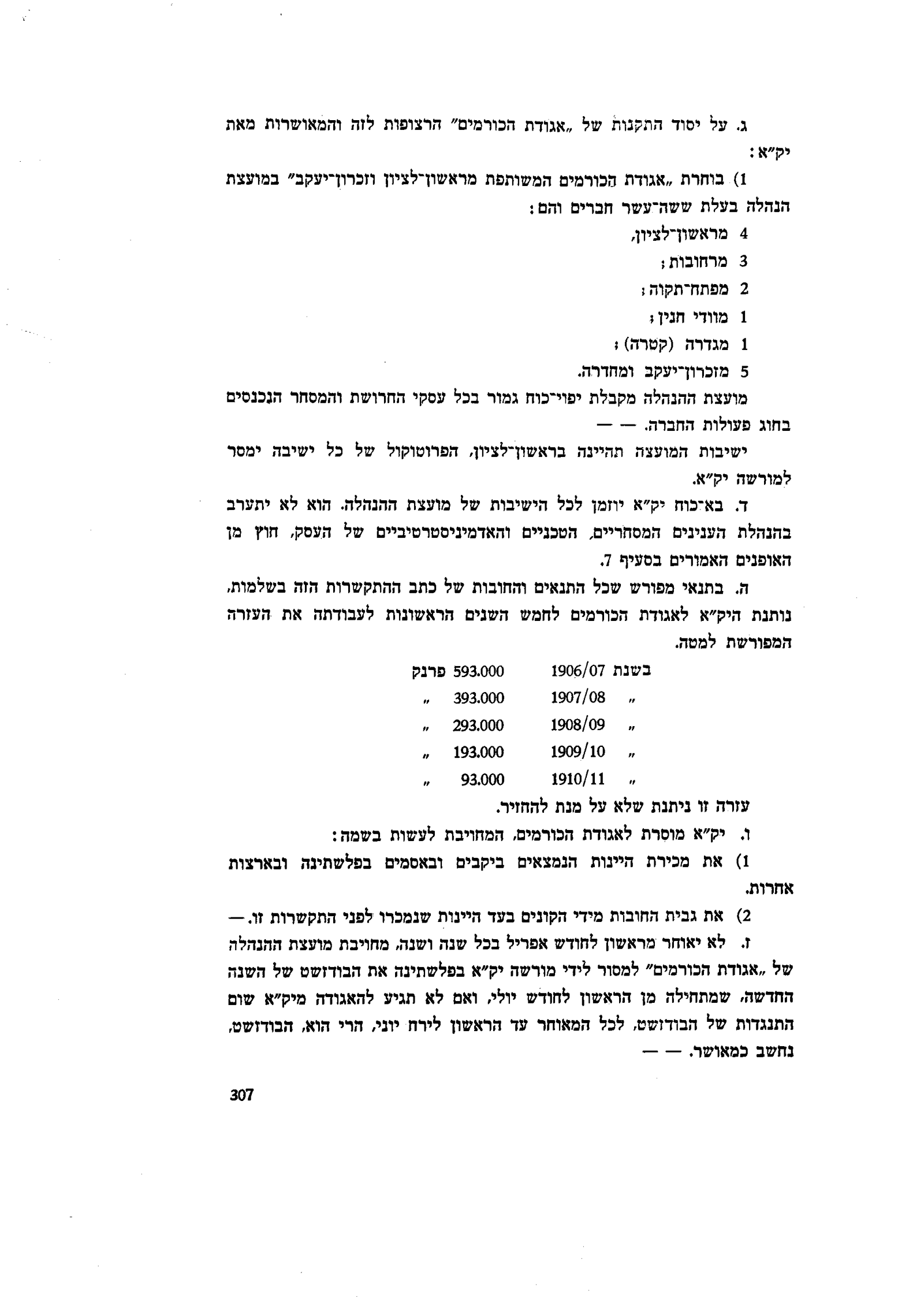 ג. על יסוד התקנות של ״אגודת הכורמים״ הרצופות לזה והמאושרות מאת