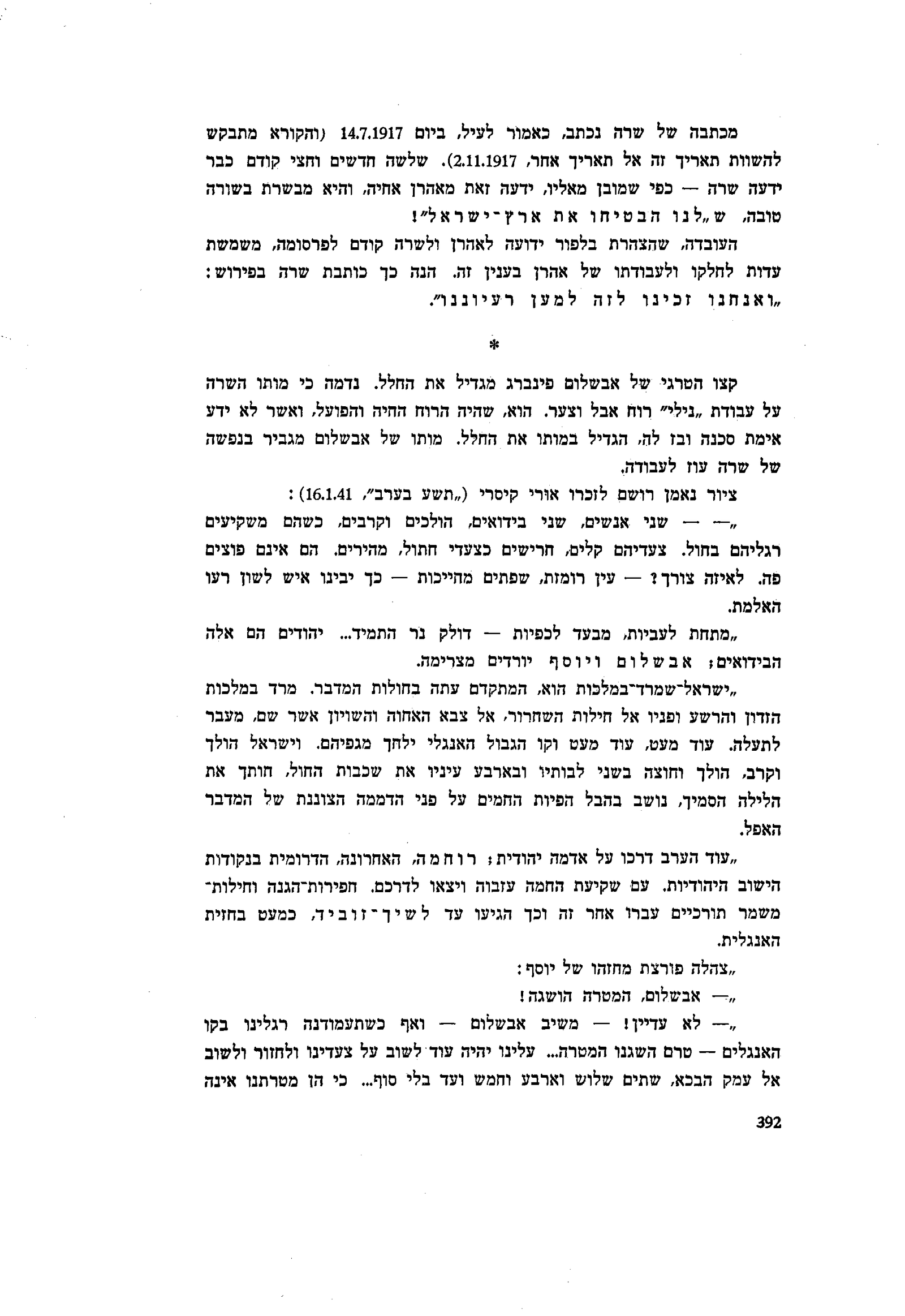״— לא עדיין! — משיב אבשלום — ואף כשתעמודנה רגלינו בקו האנגלים — טרם השגנו המטרה... עלינו יהיה עוד לשוב על צעדינו ולחזור ולשוב אל עמק הבכא, שתים שלוש וארבע וחמש ועד בלי סוף... כי הן מטרתנו אינה