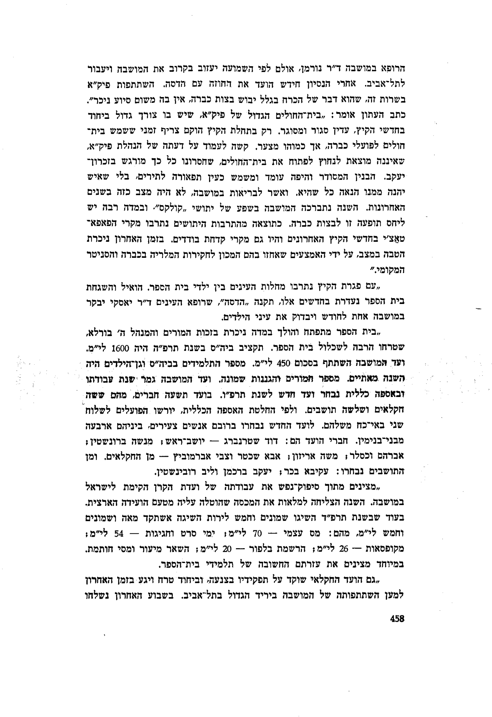 ״מצינים מתוך סיפוק־נפש את עבודתה של ועדת הקרן הקימת לישראל במושבה. השנה הצליחה למלאות את המכסה שהוטלה עליה מטעם הועידה הארצית. בעוד שבשנת