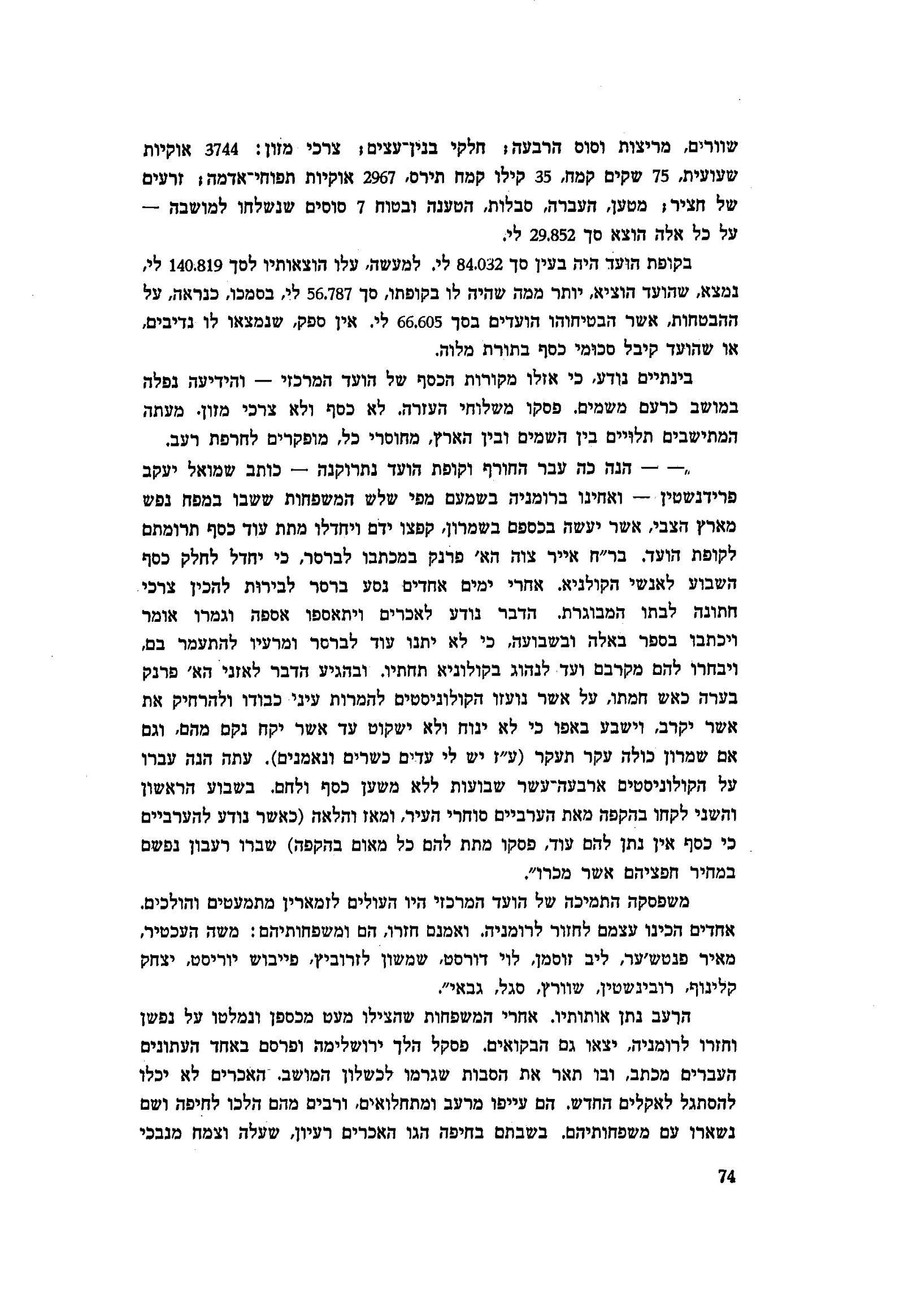 ״— — הנה כה עבר החורף וקופת הועד נתרוקנה — כותב שמואל יעקב פרידנשטין — ואחינו ברומניה בשמעם מפי שלש המשפחות ששבו במפח נפש מארץ הצבי, אשר יעשה בכספם בשמרון, קפצו ידם ויחדלו מתת עוד כסף תרומתם לקופת הועד. בר״ח אייר צוה