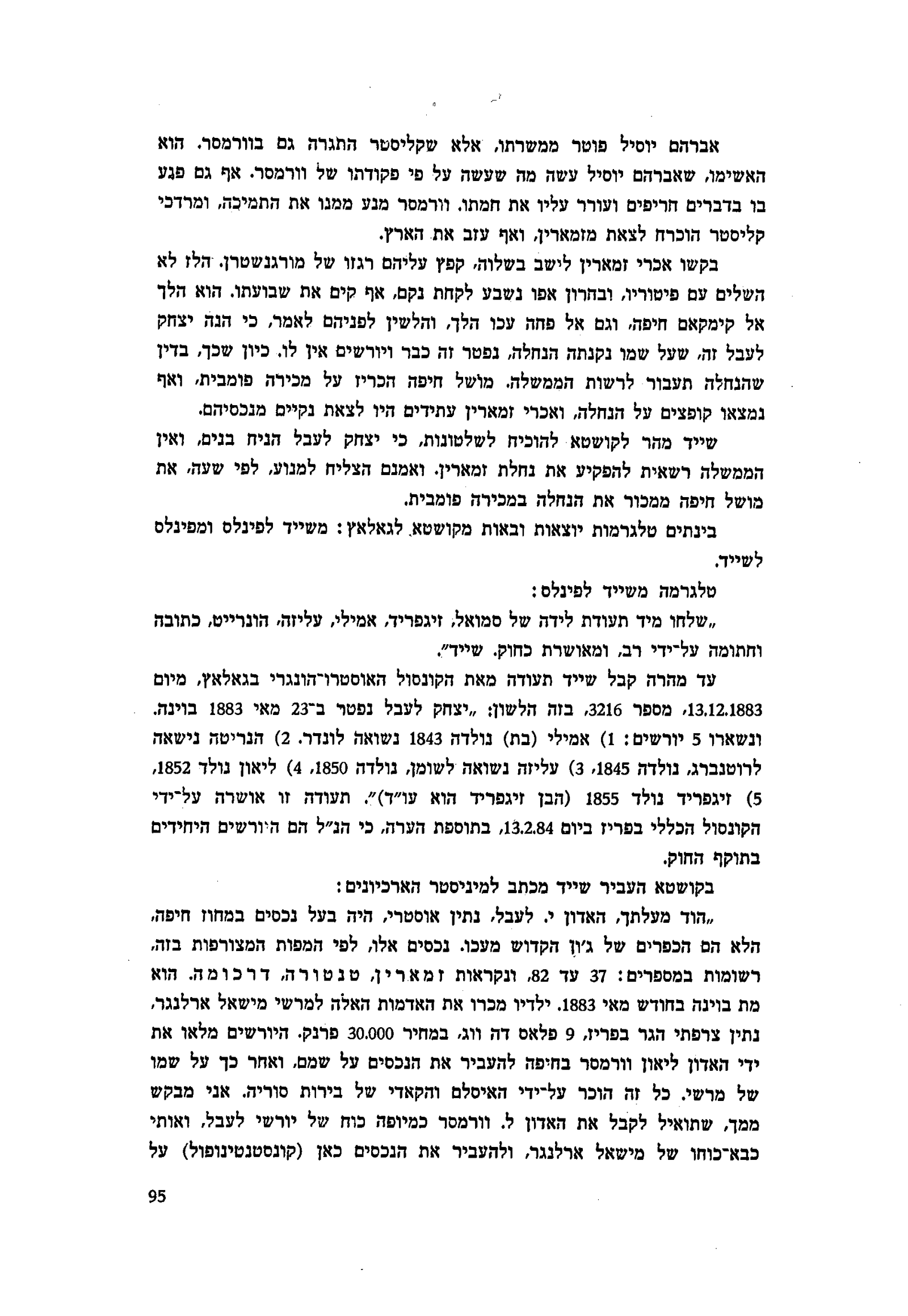 ״שלחו מיד תעודת לידה של סמואל, זיגפריד, אמילי, עליזה, הונרייט, כתובה וחתומה על־ידי רב, ומאושרת כחוק. שייד״.
